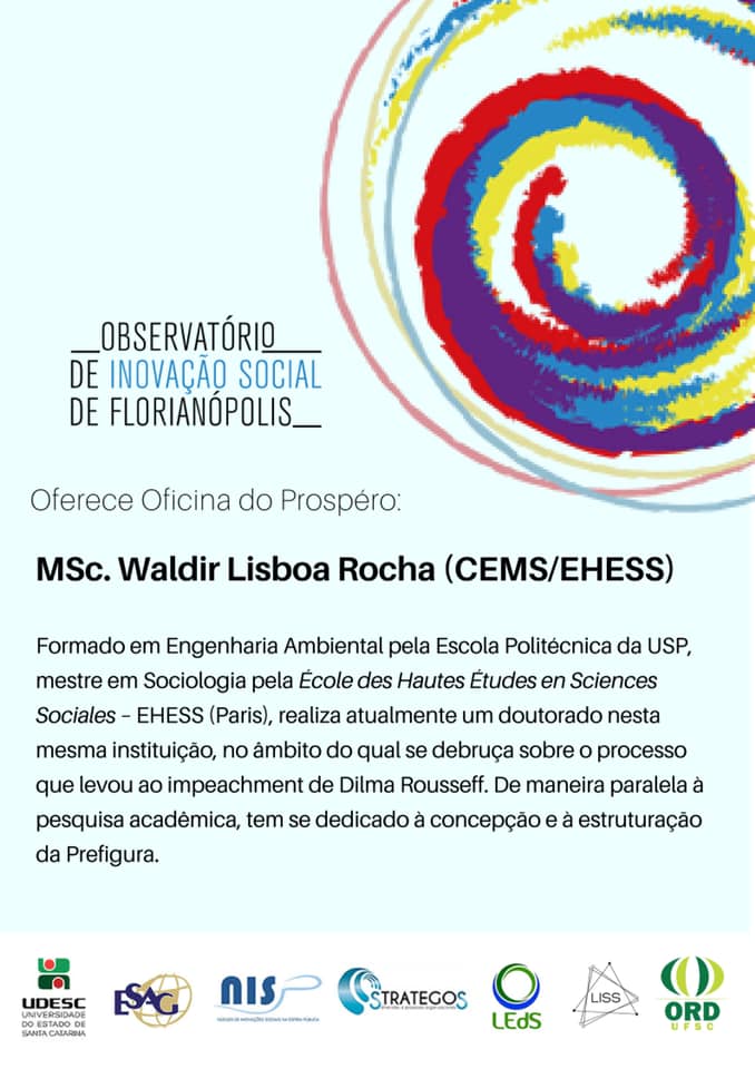 O Núcleo de Inovações Sociais na Esfera Pública, por meio do Observatório de Inovação Social de Florianópolis oferecerá a oficina “Prospéro” (PROgramme de Sociologie Pragmatique, Expérimentale et Réflexive sur Ordinateur – © Doxa) com o MSc. Waldir Lisboa Rocha.