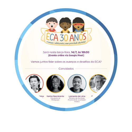 Para iniciar essa campanha, será realizado o primeiro webinário com o tema: “Avanços e desafios em 30 anos do ECA”, que trará como participantes os jovens: Leonardo de Lima, membro da Comissão Provincial de Juventudes Marista, e Karine Nascimento, estudante de pedagogia. Além disso, o webinário contará com a participação de Alexandre Takashima, Juiz da 3ª Vara Criminal de Lages, e do Padre Vilson Groh, presidente do Instituto Vilson Groh, que trarão suas perspectivas de avanços e de desafios do ECA nesses 30 anos, a partir de suas experiências e atuação nesse campo.