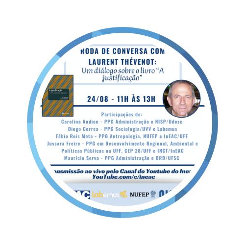 No próximo dia 24 de agosto de 2021, das 11h às 13h, será realizada uma Roda de Conversa com o professor Laurent Thévenot sobre o seu livro em parceria com o professor Luc Boltanski, intitulado: “A justificação: sobre as economias da grandeza”, cuja tradução foi recentemente publicada pela editora da UFRJ e traduzido por Alexandre Werneck.