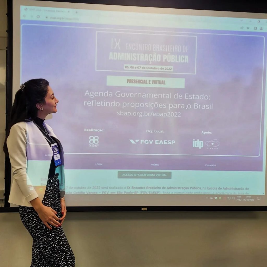 Victória Vilvert e o Professor Dr. Daniel Pinheiro apresentaram seu artigo no GT 15 “Casos de Ensino na Administração Pública” com o artigo “Rompendo as barreiras à participação: o caso da CGE-GO”, que contou também com o professor Dr. Éverton Cancellier, da ESAG/UDESC.