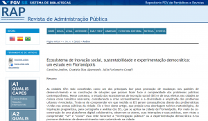 Acaba de ser publicado na primeira RAP (Revista de Administração Pública) desse ano, 2020, o artigo “Ecossistema de inovação social, sustentabilidade e experimentação democrática: um estudo em Florianópolis” co-produzido pela Profa. Dra. Carolina Andion, Profa. Dra. Graziela Dias Alperstedt e a Dra. Júlia Furlanetto Graeff, que sintetiza um longo e intenso trabalho coletivo e colaborativo […]