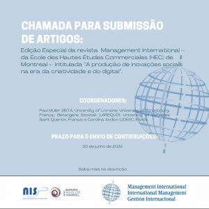 Até o dia 30 de junho de 2022 a edição especial da Revista Management International, da École des Hautes Études Commerciales (HEC), de Montreal, recebe contribuições de artigos sobre temas relacionados à “A produção de Inovações Sociais na Era da Criatividade e do Digital”, título da edição especial. A referida edição conta com a coordenação […]